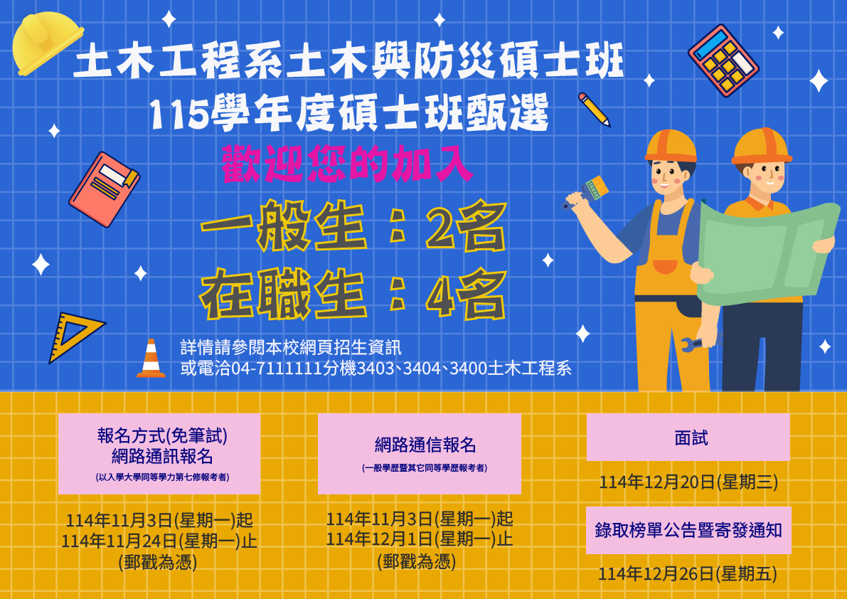 • 進修部二技 1班,核定名額55名 (115學年度)