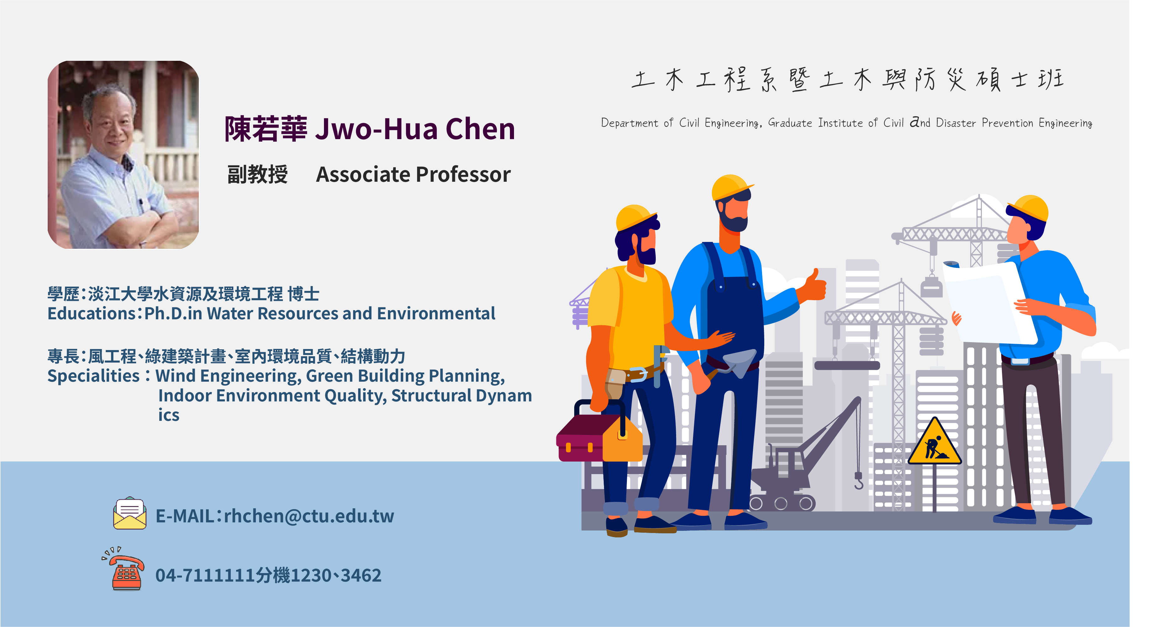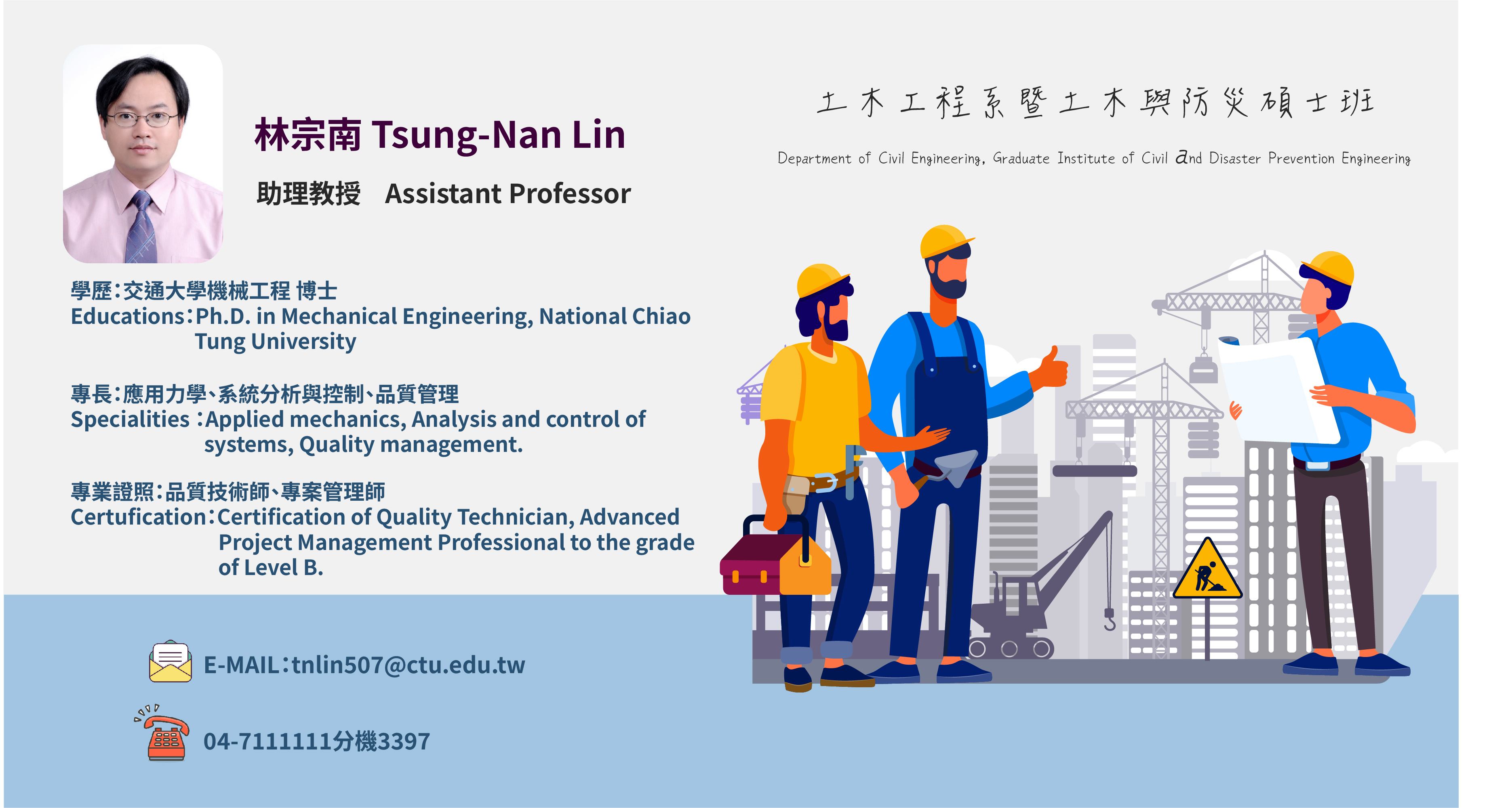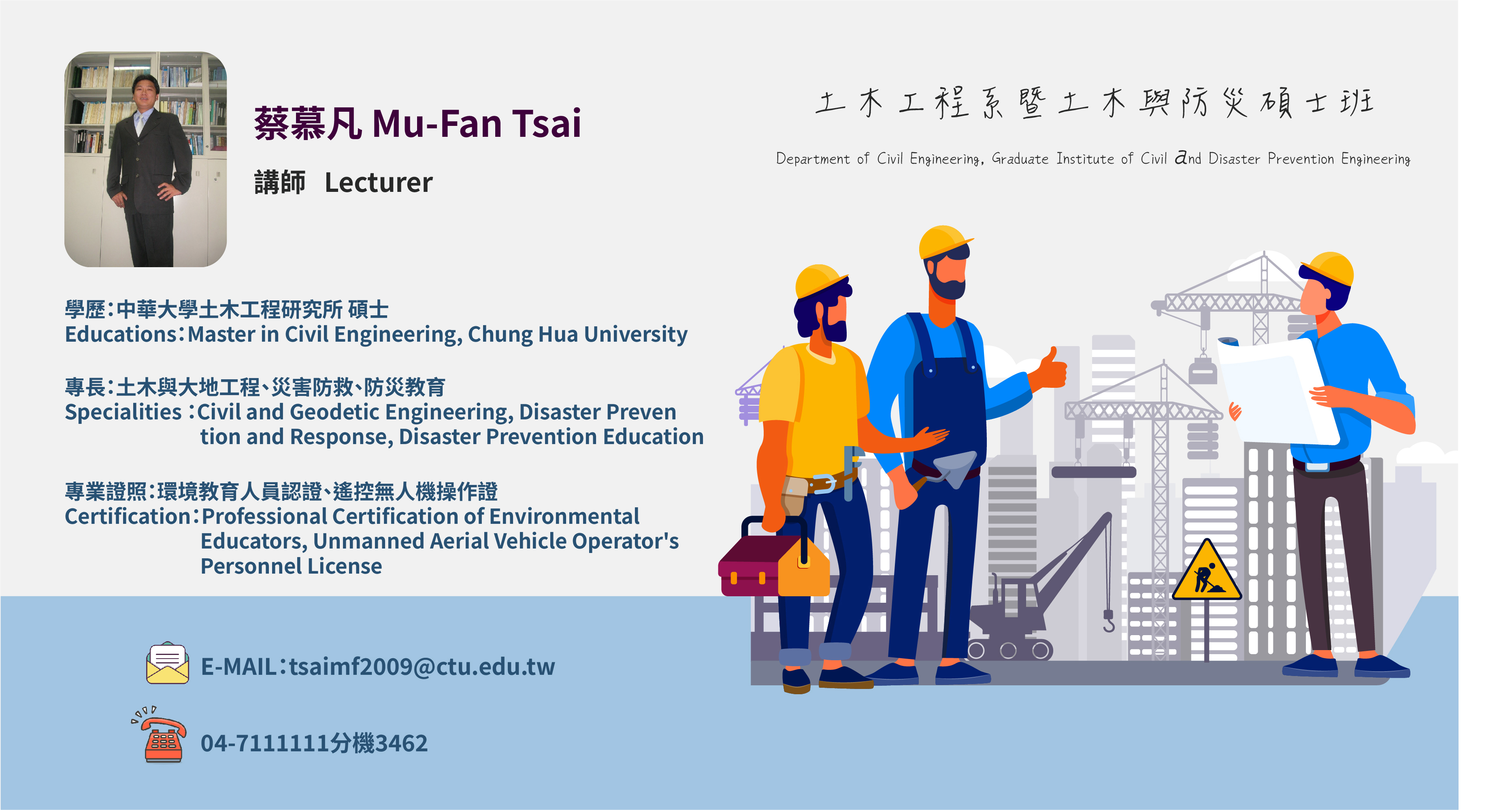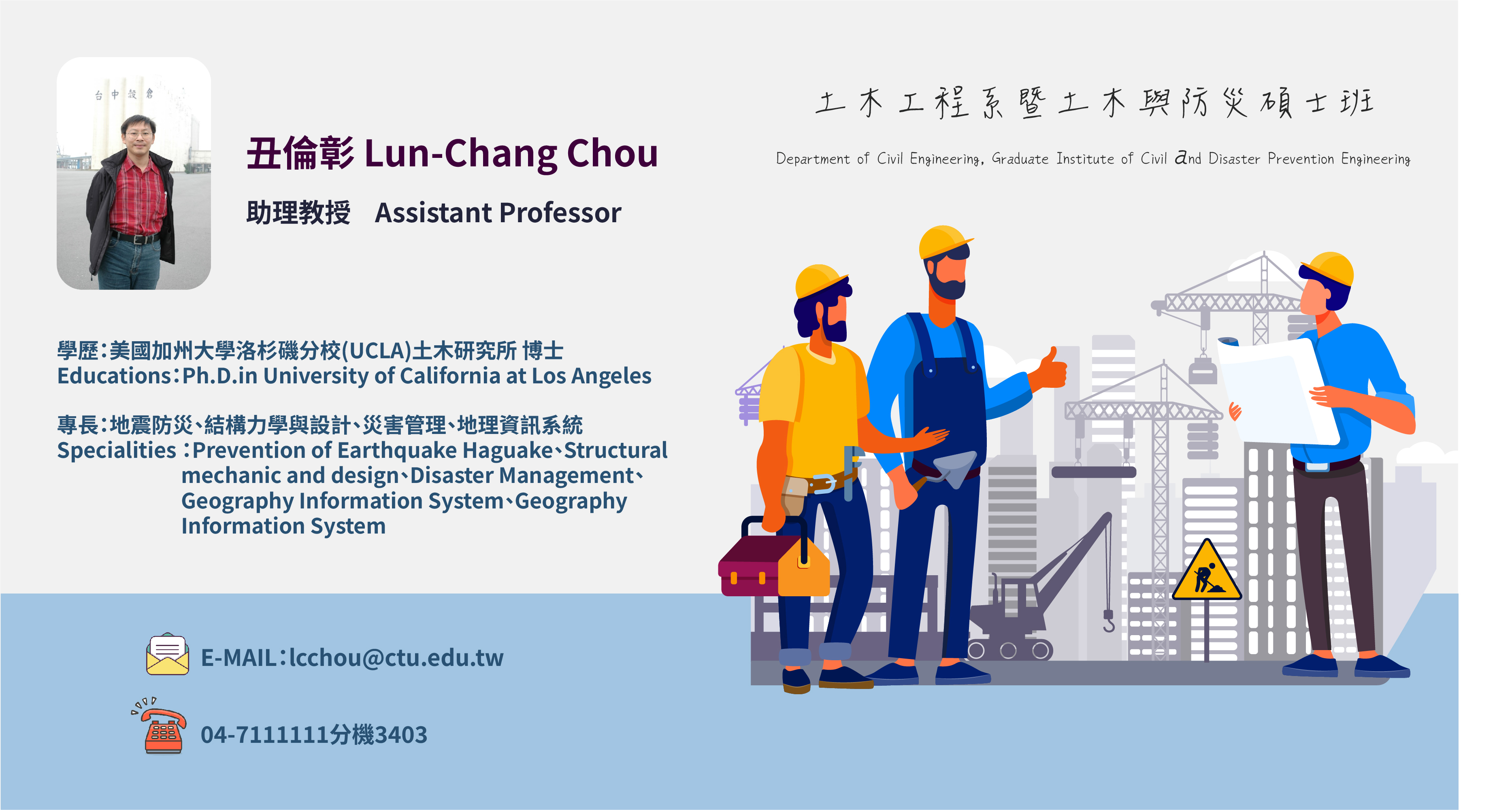 本系所目前共有9位專任教師,其中教授1位、副教授3位、助理教授4位、講師1位。兼任教師依課程之需求聘請產、官、學界之專家學者至系上講授實務或技術性質之課程,藉以將目前最新的土木建築資訊傳達給系上的學生,使學生在畢業後能受用於現實社會職場中。