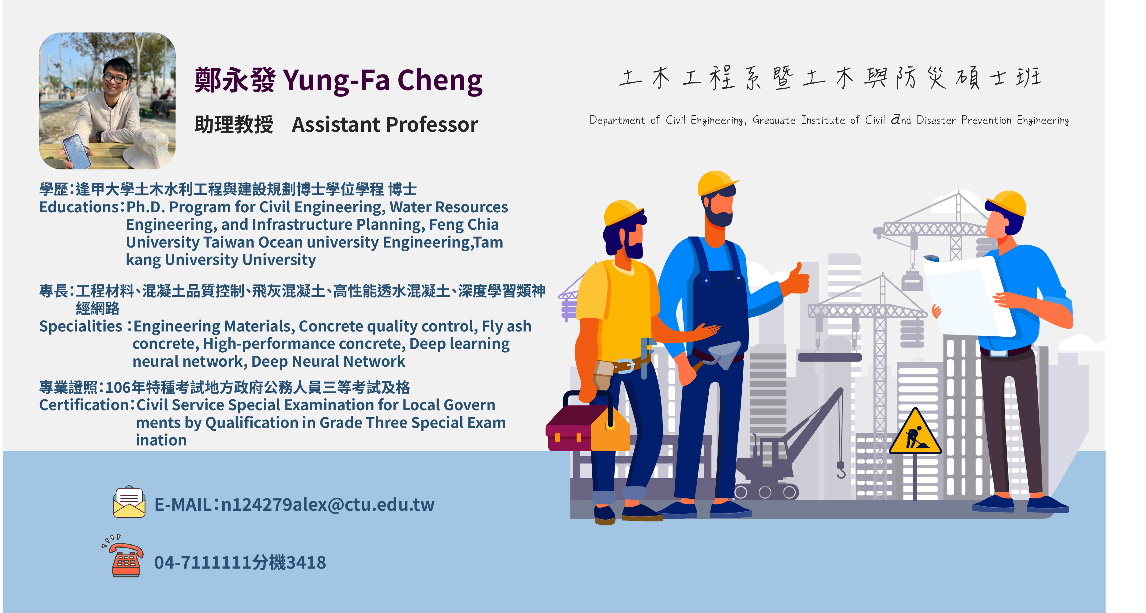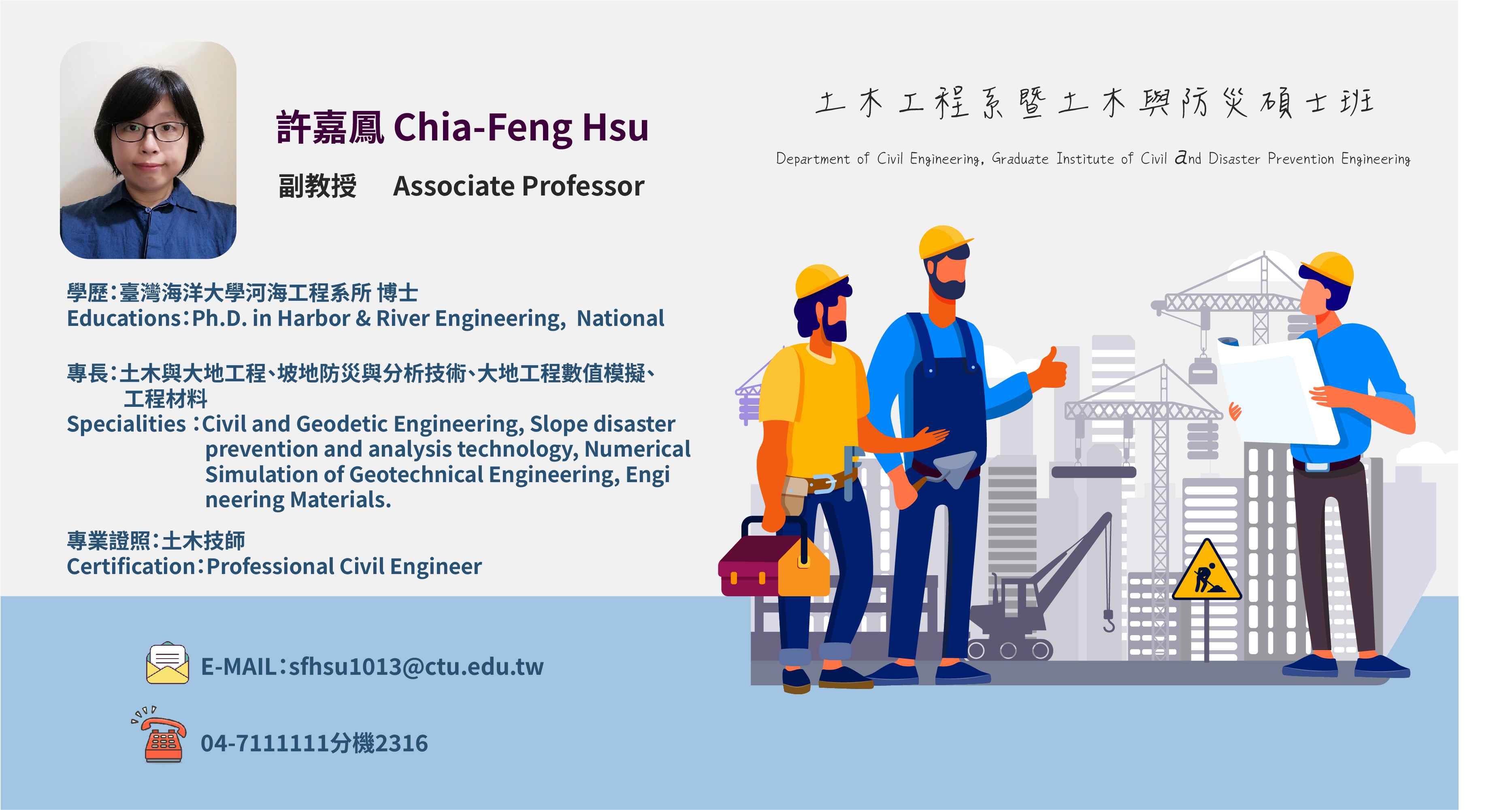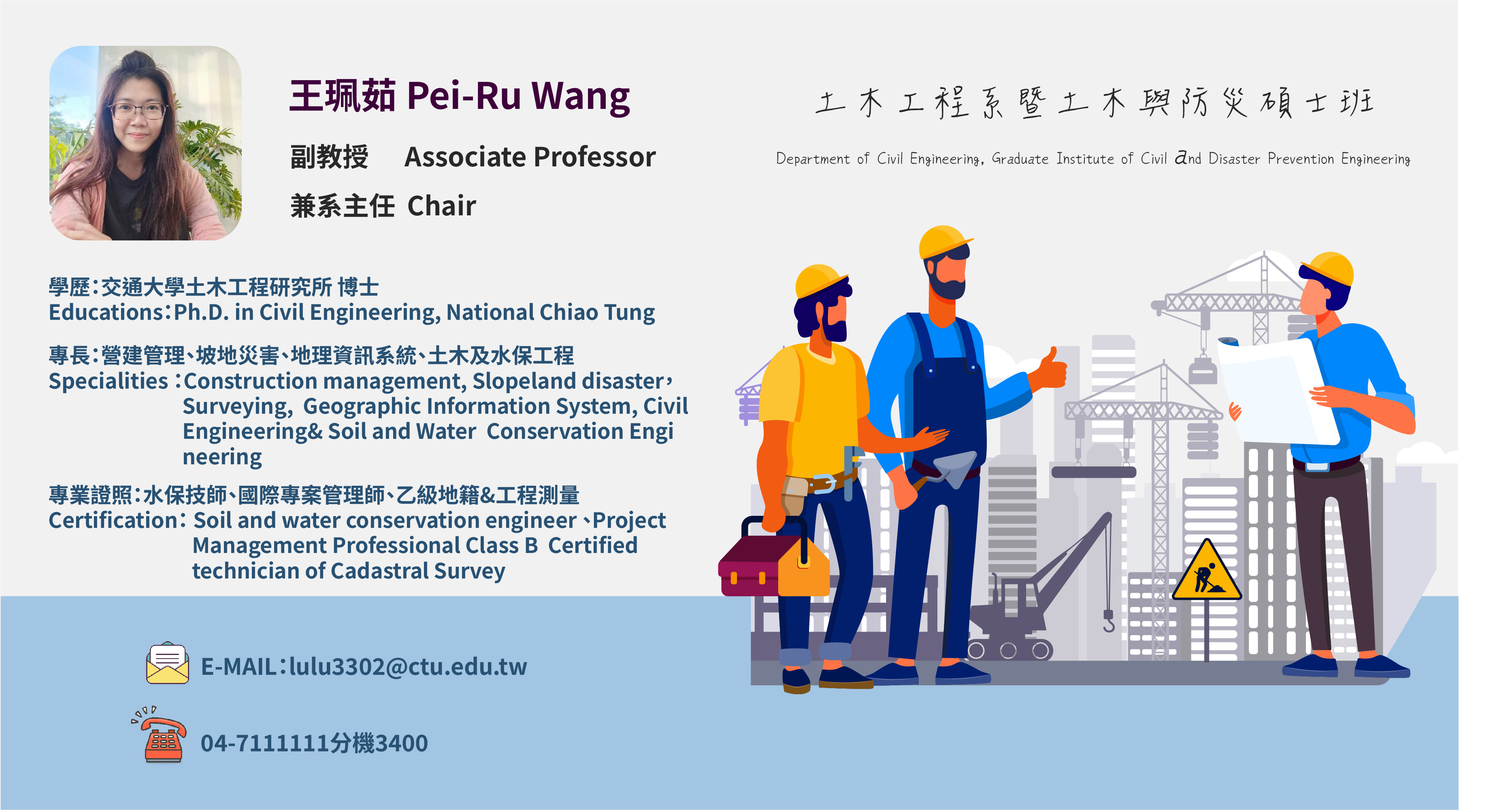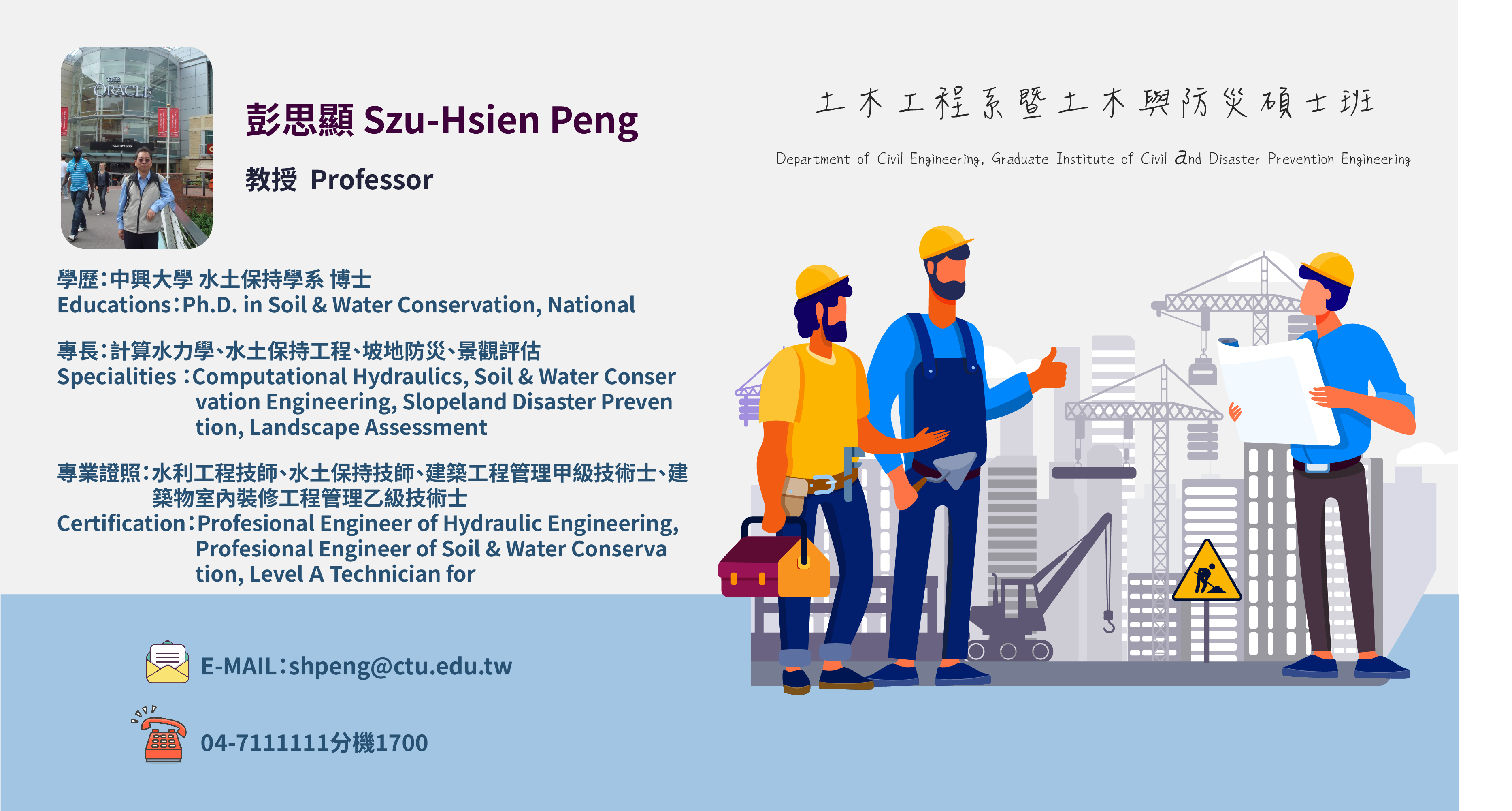 本系所目前共有9位專任教師,其中教授1位、副教授3位、助理教授4位、講師1位。兼任教師依課程之需求聘請產、官、學界之專家學者至系上講授實務或技術性質之課程,藉以將目前最新的土木建築資訊傳達給系上的學生,使學生在畢業後能受用於現實社會職場中。